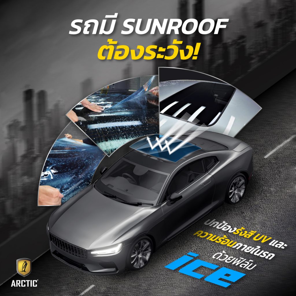 ใครที่มี Sunroof อยากแก้ปัญหาความร้อนสะสม รังสี UV และคราบน้ำบนกระจก ต้องลองเปลี่ยนมาติดฟิล์ม ICE จาก Arctic Film ฟิล์มคุณภาพดีที่มีอายุการใช้งานนาน 3-5 ปี ซื้อครั้งเดียวคุ้มแน่นอน!